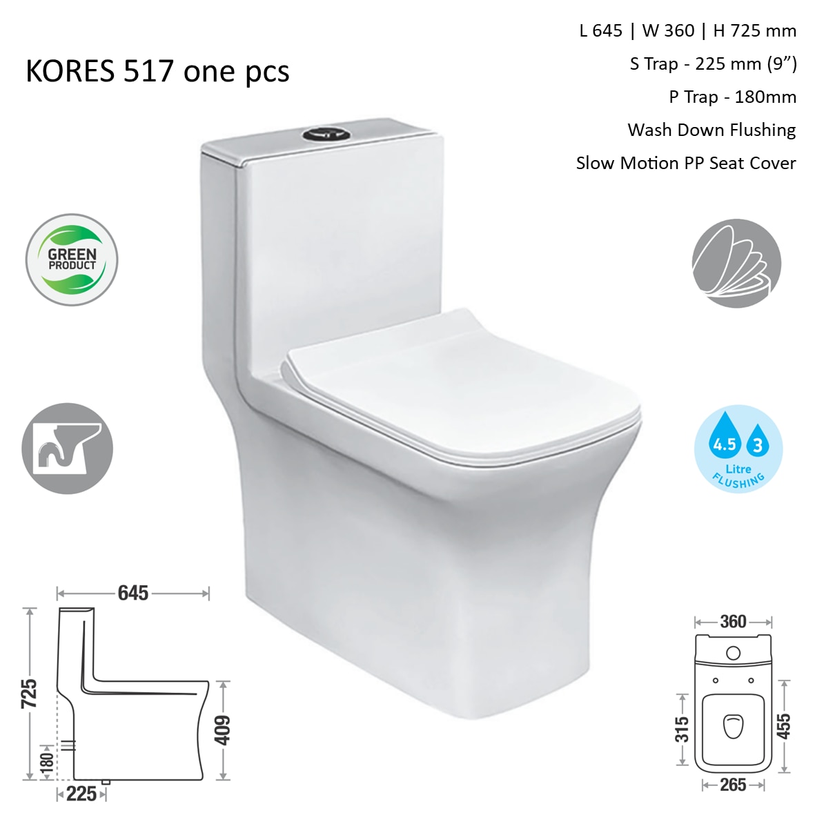 One pcs full set including Soft close seat cover, Gasket and cistern fittings. for more details you can visit https://bellsanitary.com/product/kores-517/